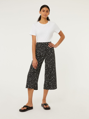 Black Polka Dot Print Cropped Culottes Women at ASDA